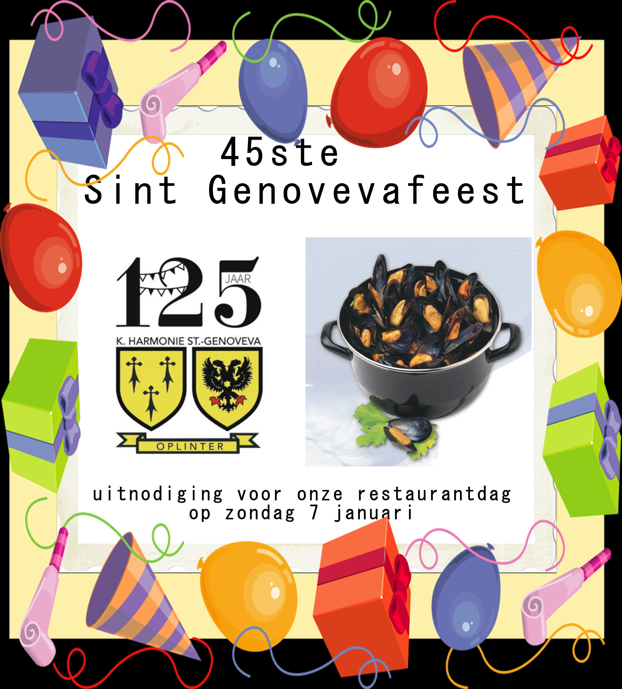 Nieuwjaarswensen of verjaardagswensen, het kan allemaal in januari 2024. Het is immers een feestelijk jaar voor onze vereniging, we bestaan 125 jaar! Een reden te meer om mekaar te ontmoeten op onze restaurantdag op zondag 7 januari e. k., welkom!