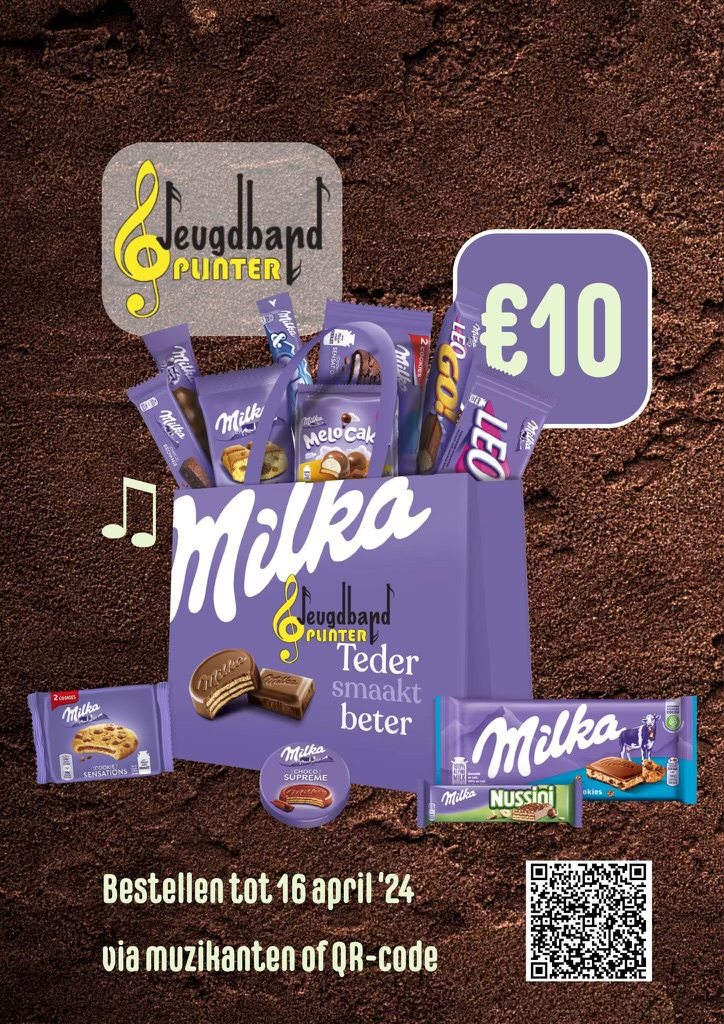 Yes, we doen weer een Milca-actie met muzikale chocolade, kostprijs 10 euro, levering 12 mei.